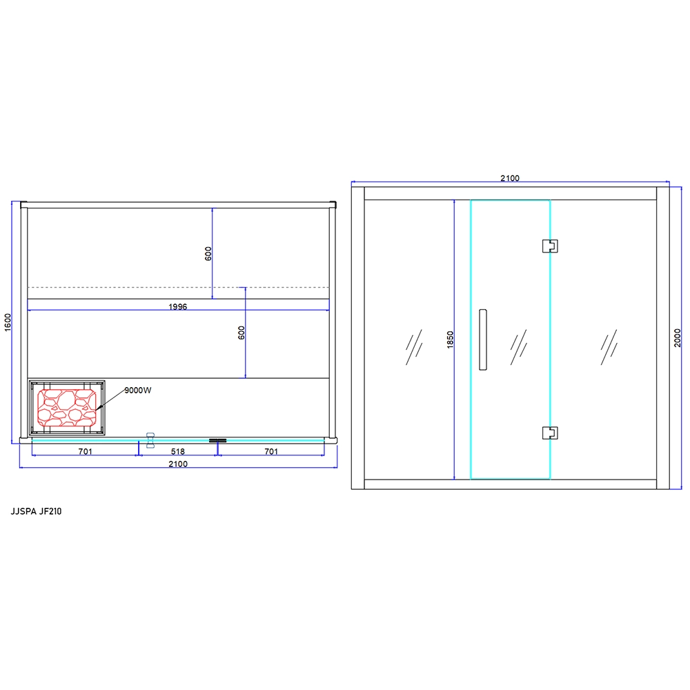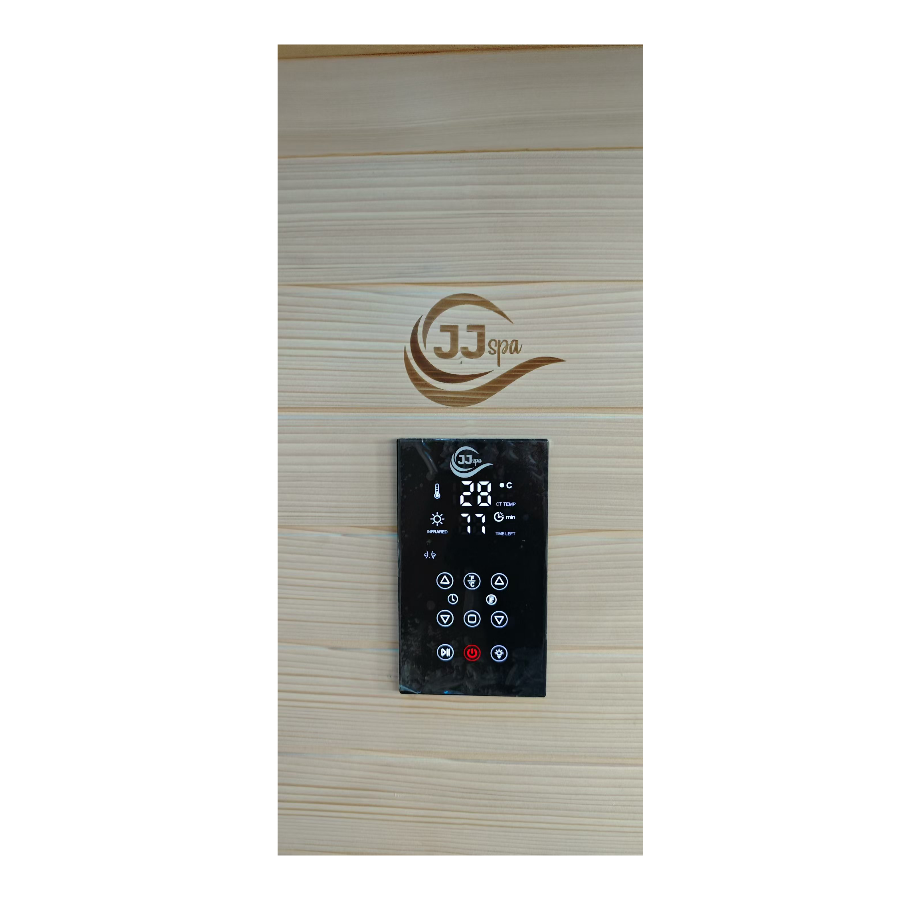 Во финската сауна JF210, ќе најдете внимателно куриран сет на функции дизајнирани да обезбедат сеопфатна терапевтска средба. Ова вклучува висококвалитетни грејни елементи, дигитални контролни панели, ергономски дизајнирани седишта, материјали од врвна класа и смирувачко амбиентално осветлување. Заедно, овие елементи се комбинираат за да создадат ресторативно и негувачко искуство што ја негува вашата целокупна благосостојба.