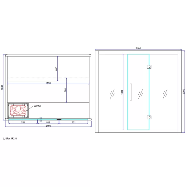 Во финската сауна JF210, ќе најдете внимателно куриран сет на функции дизајнирани да обезбедат сеопфатна терапевтска средба. Ова вклучува висококвалитетни грејни елементи, дигитални контролни панели, ергономски дизајнирани седишта, материјали од врвна класа и смирувачко амбиентално осветлување. Заедно, овие елементи се комбинираат за да создадат ресторативно и негувачко искуство што ја негува вашата целокупна благосостојба.